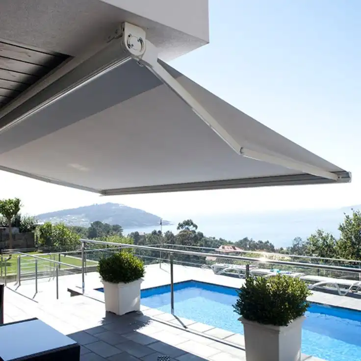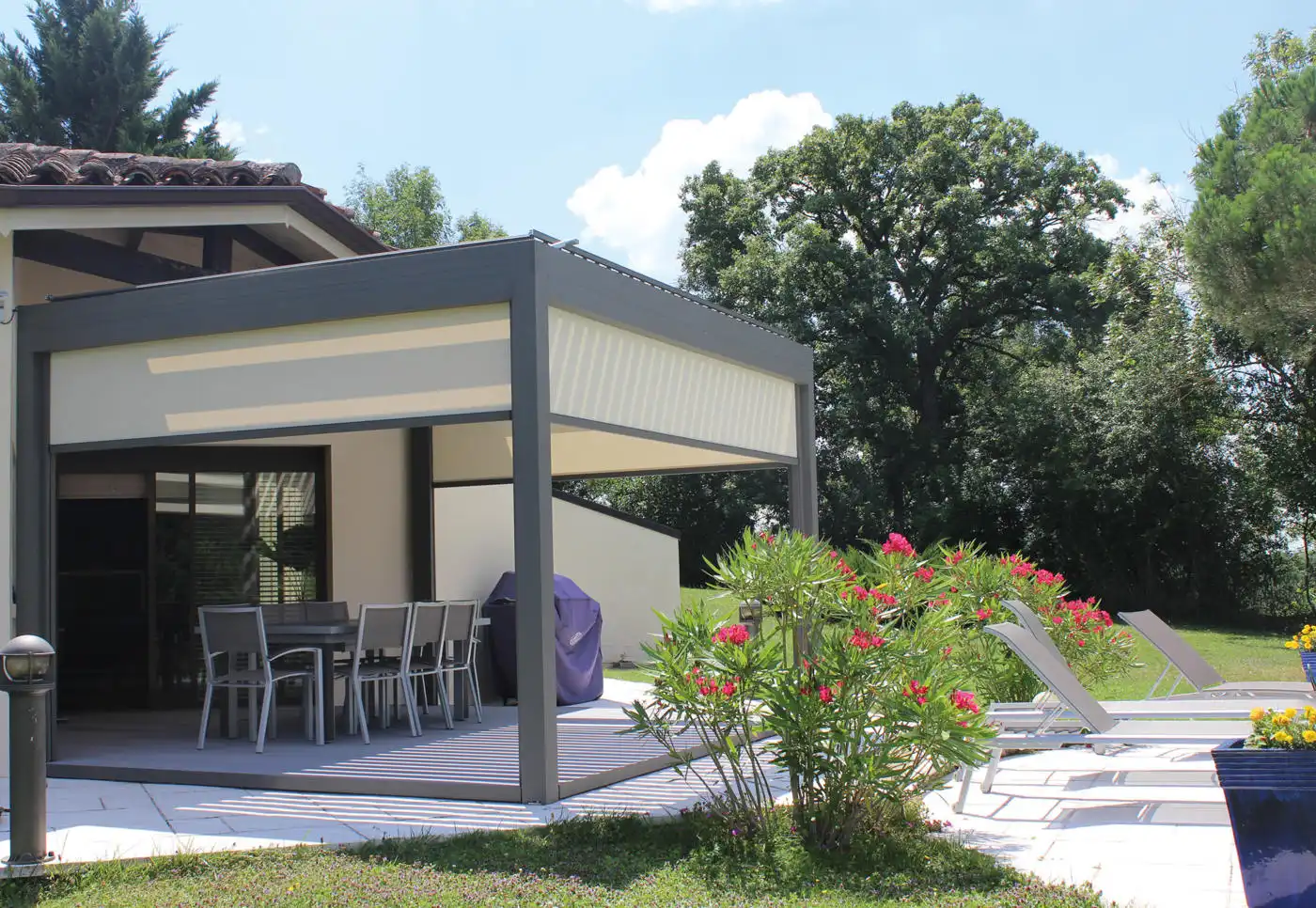 Nos modèles sont disponibles en version manuelle ou motorisée (motorisation Somfy), avec capteurs de vent et de soleil pour un confort optimal. Le réglage de l’inclinaison permet une gestion précise de l’ombre selon l’heure de la journée.